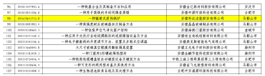 近日,第十一届安徽省专利奖评选结果揭晓,安徽科达洁能的发明专利“一种辐射式废热锅炉”(专利号:201610615713.8)荣获专利优秀奖。